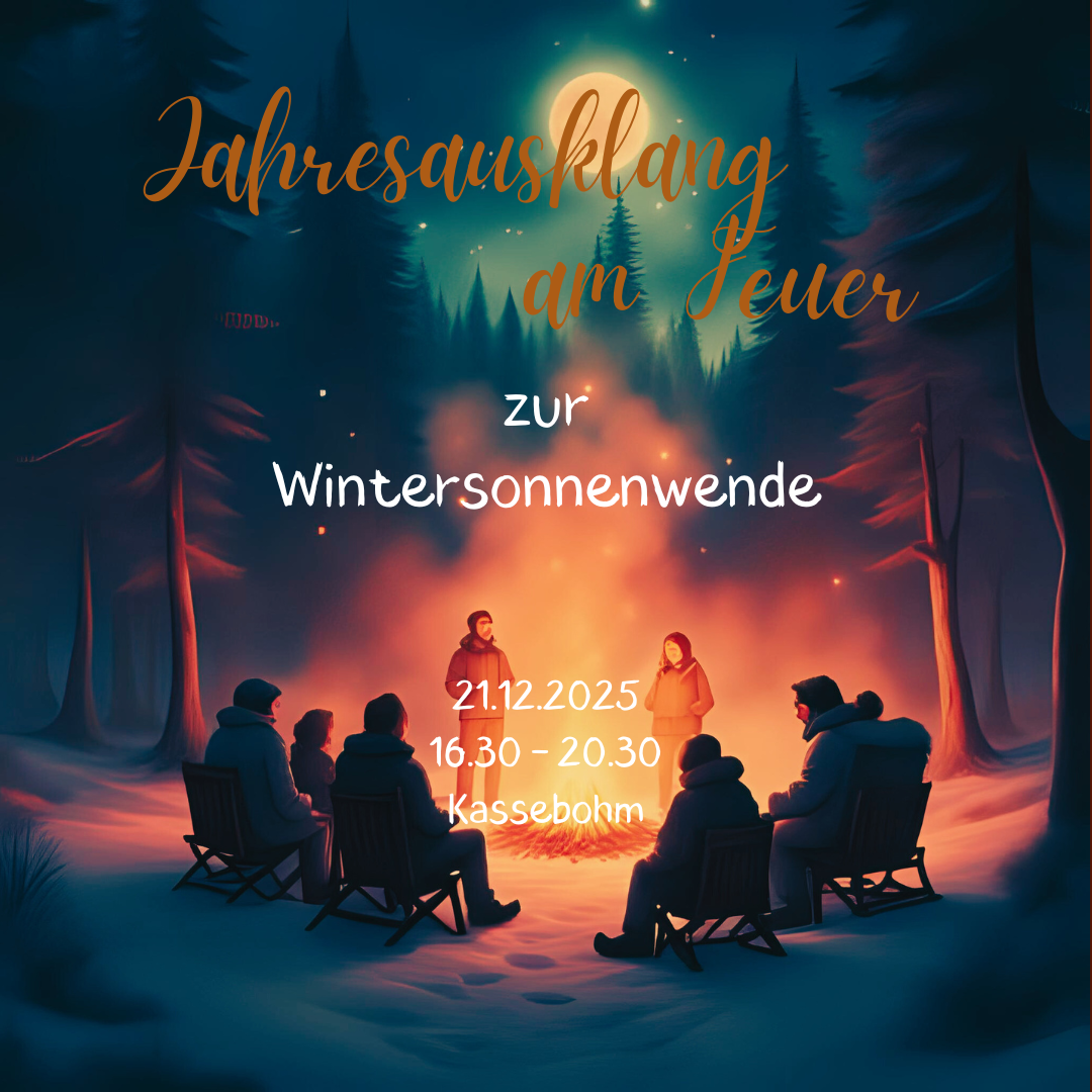 Das Jahr neigt sich dem Ende zu, und was könnte besser sein, als es mit einem gemütlichen Abend am Feuer unter freiem Himmel zu verabschieden? Lasst uns zusammen sitzen, plaudern, lachen, singen und das knisternde Feuer genießen. Bringt gerne eure Klanginstrumente mit und gemeinsam den Abend zu gestalten. Komm und geh, so wie es für dich passt ❤️.